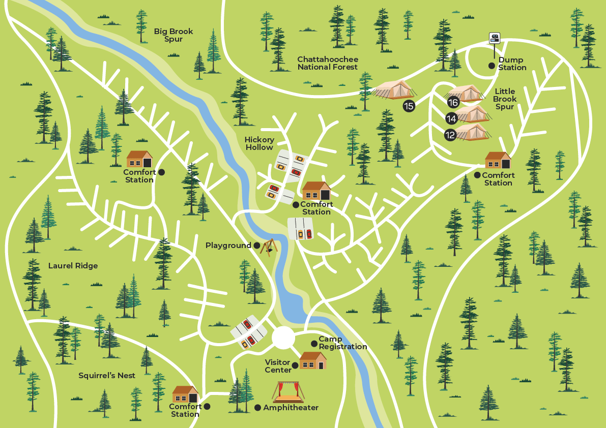 Enjoy the views from your glamping site and relax with included amenities like a wood fire pit, hammocks, and picnic tables.